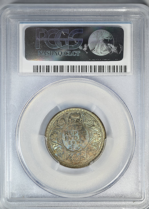 1934(c) British India 1/2R Half Rupee PCGS MS64 - REVERSE TONED!