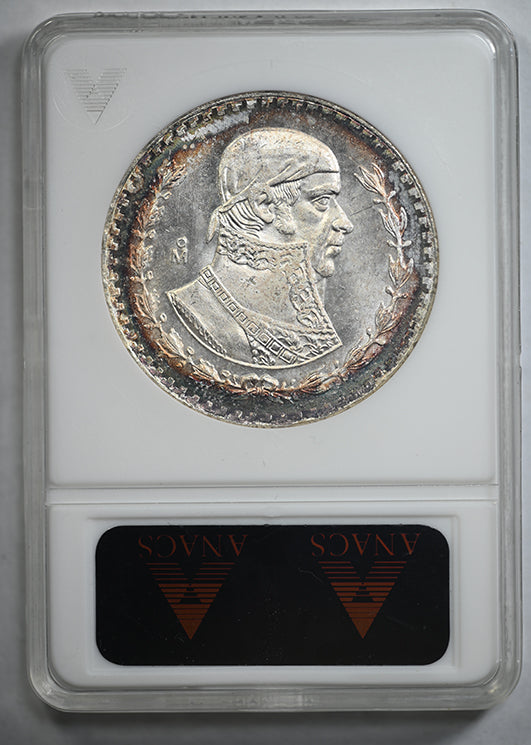 1965-Mo Mexico Silver Peso ANACS Soapbox MS65 - TONED!