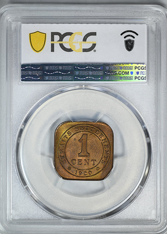 1920 Straits Settlements 1C Cent PCGS MS63RB - TONED!