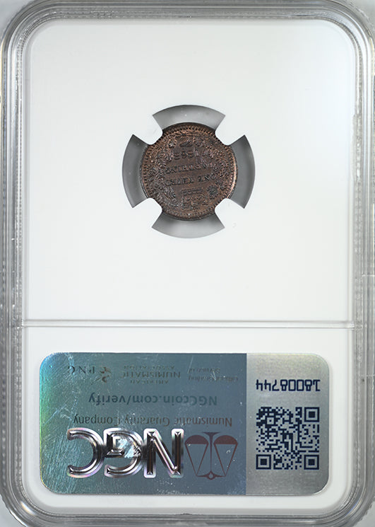 1841(C) India British 2 Annas PCGS MS62 SW-3.62 Prid-121