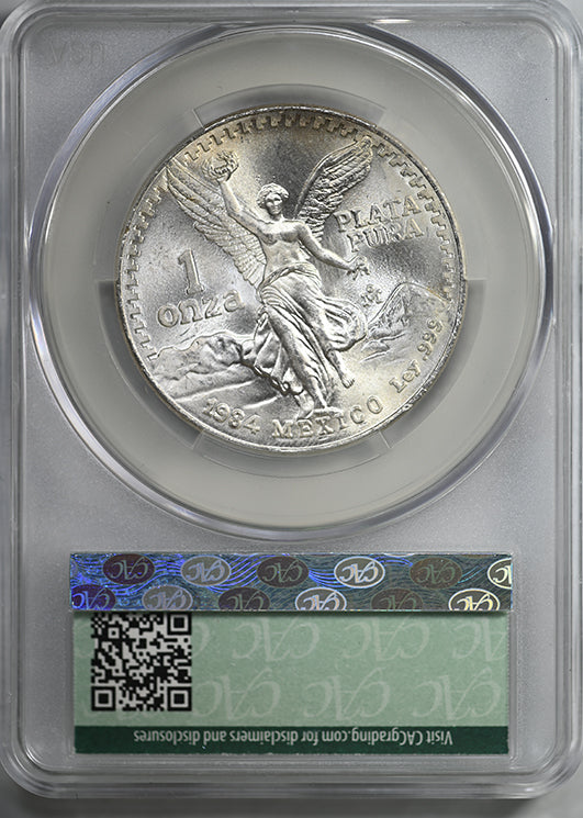 1984-Mo Mexico Silver Libertad 1 Onza CAC MS67 - RAINBOW TONED!