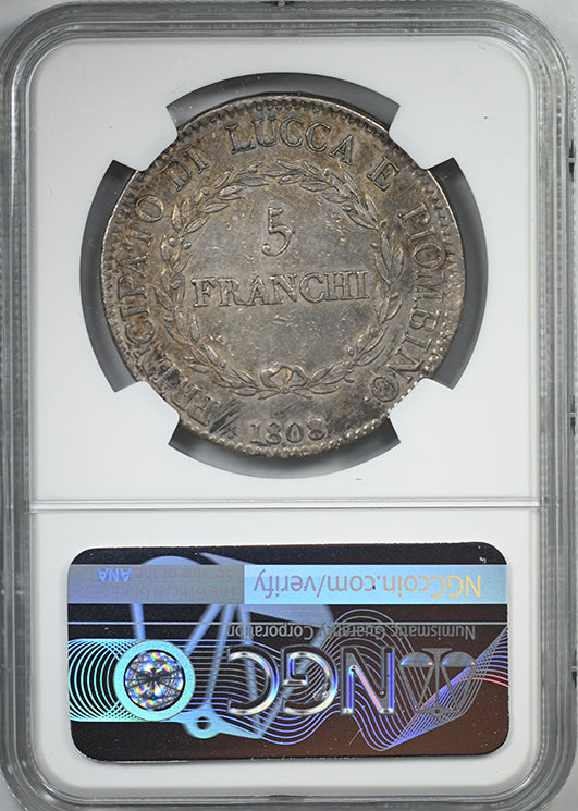 1808/7 Italy 5 Franchi Lucca & Piombino NGC AU55