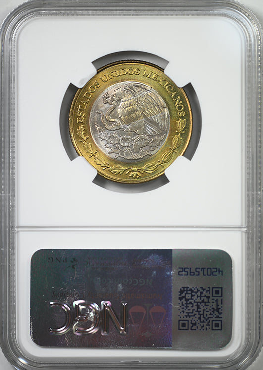 1992 Mo Mexico 10P Nuevo Pesos Estados Unidos Mexicano Bimetallic Ag Center-AI Bronze Ring NGC MS65