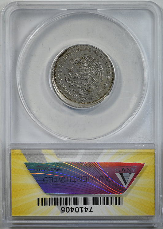 1985-Mo Mexico 50P Pesos ANACS AU50 Mint Error Broadstruck