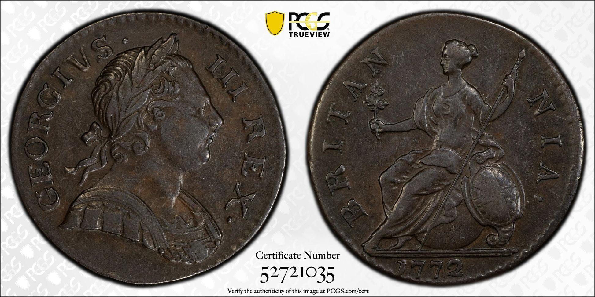1772 Great Britain 1/2D Half Penny PCGS XF45 S-3774