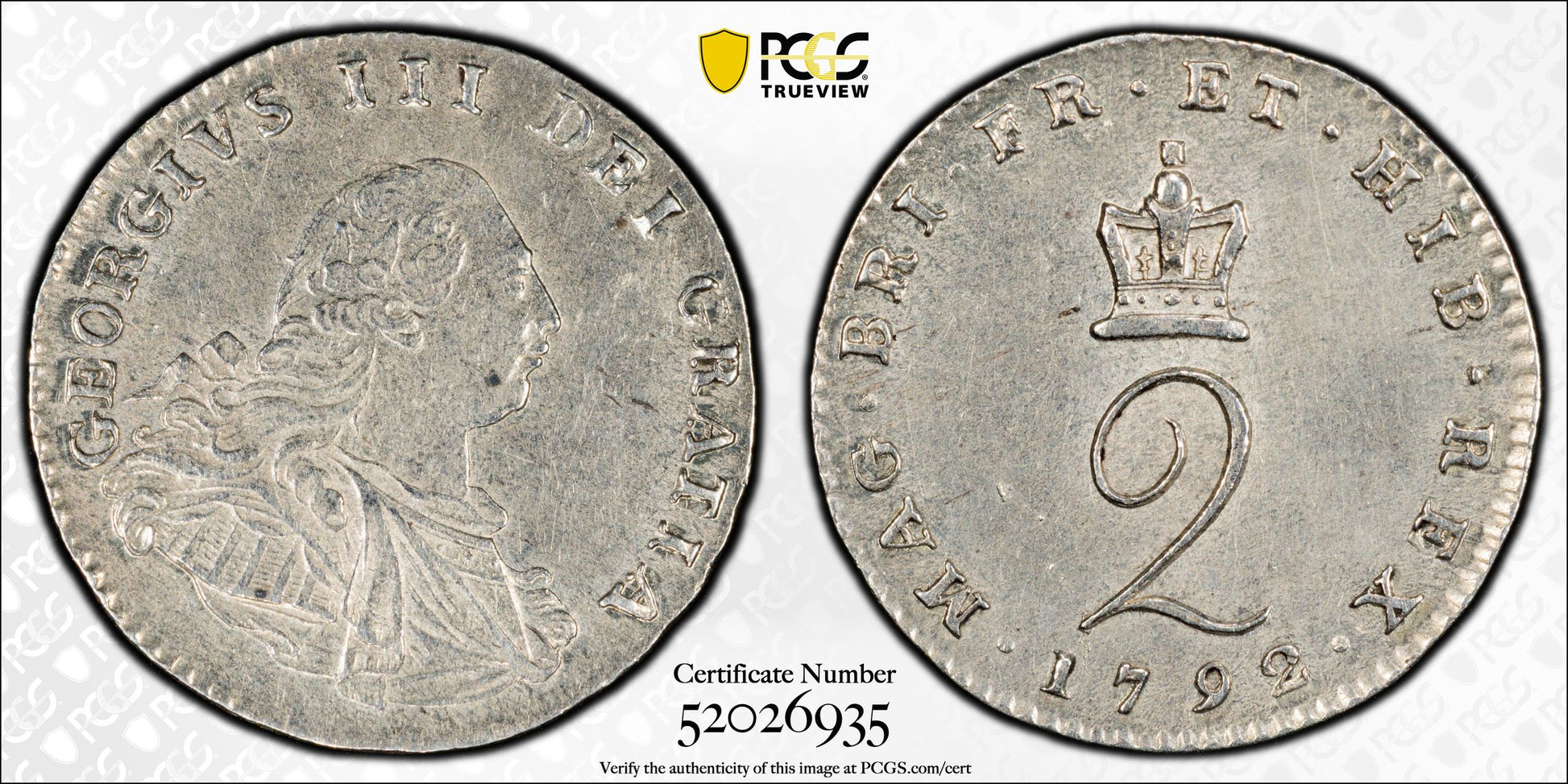 1792 Great Britain Silver 2D Pence Maundy PCGS MS61 S-3757
