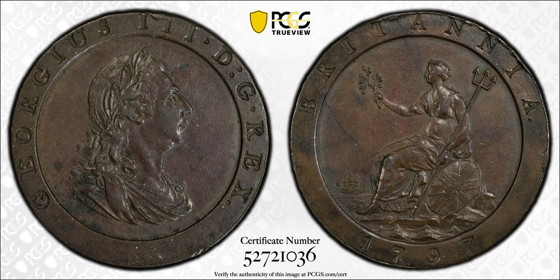 1797 Great Britain 1D Penny PCGS AU55 S-3777 10 Leaves