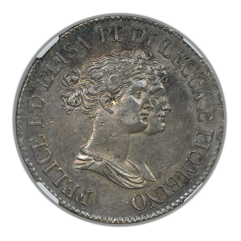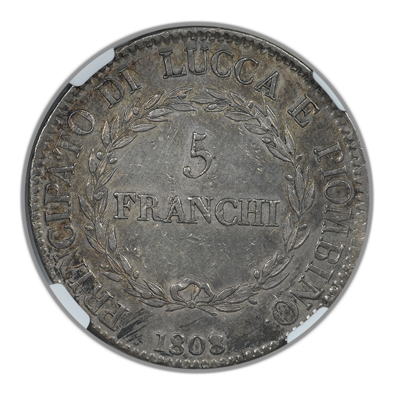 1808/7 Italy 5 Franchi Lucca & Piombino NGC AU55