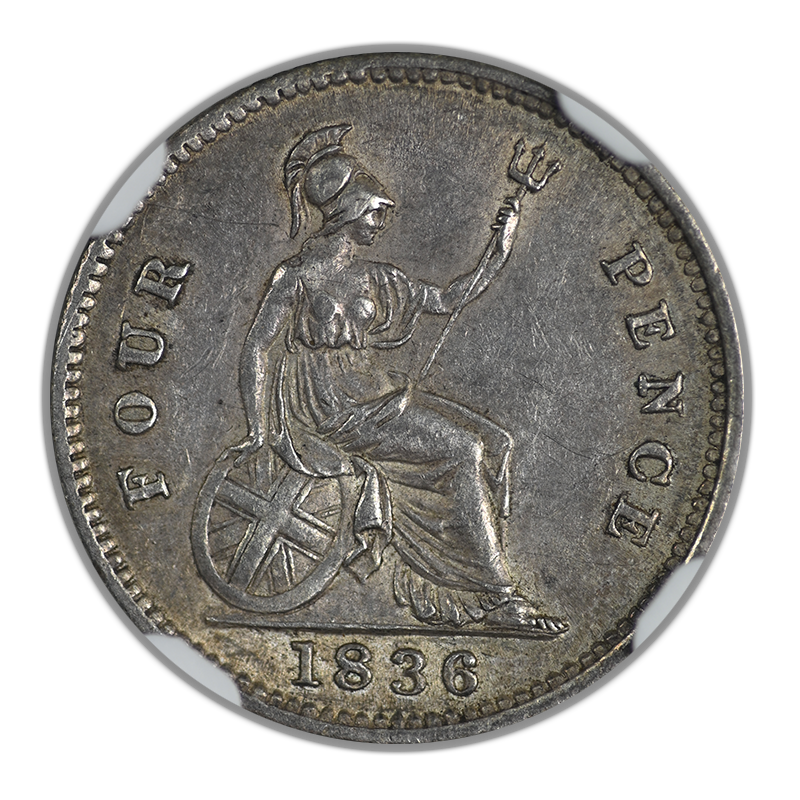 1836 Great Britain Britannia 4P Pence NGC AU55