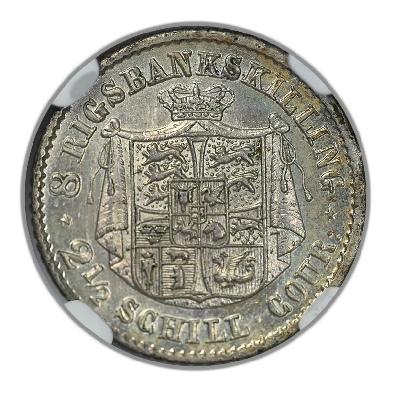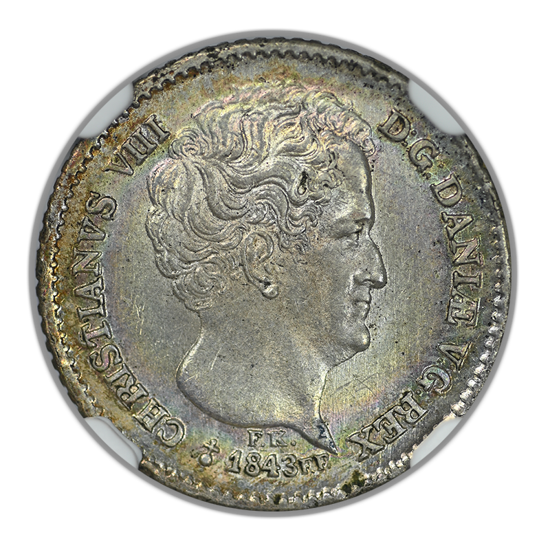 1843 FK//FF Denmark 8RBS Rigsbankskilling NGC MS64 - TONED!