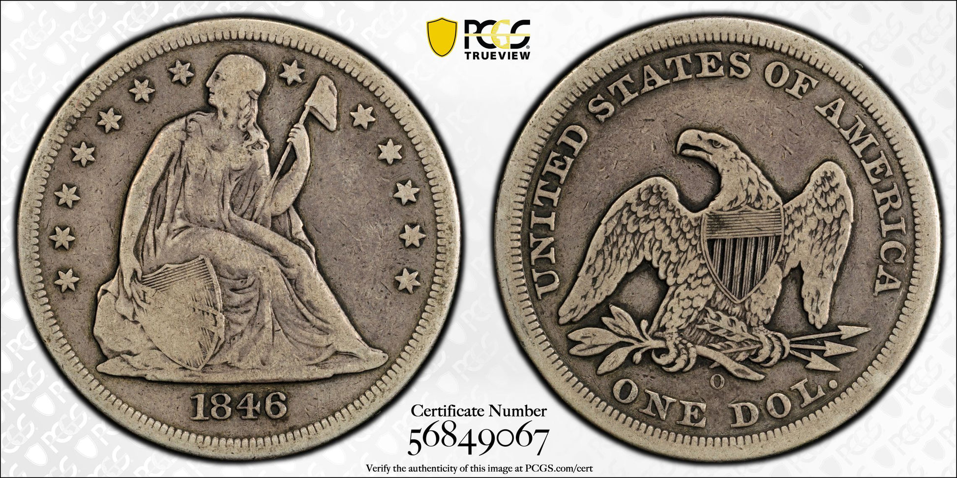 1846-O Liberty Seated Dollar $1 PCGS F12