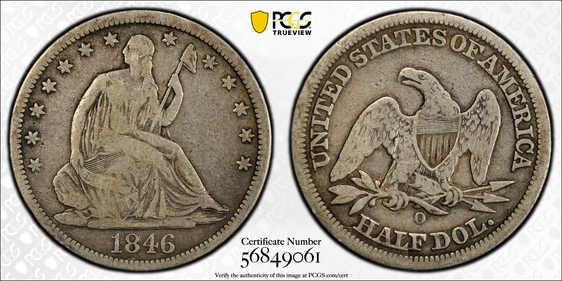 1846-O Liberty Seated Half Dollar 50C PCGS F12 - Tall Date