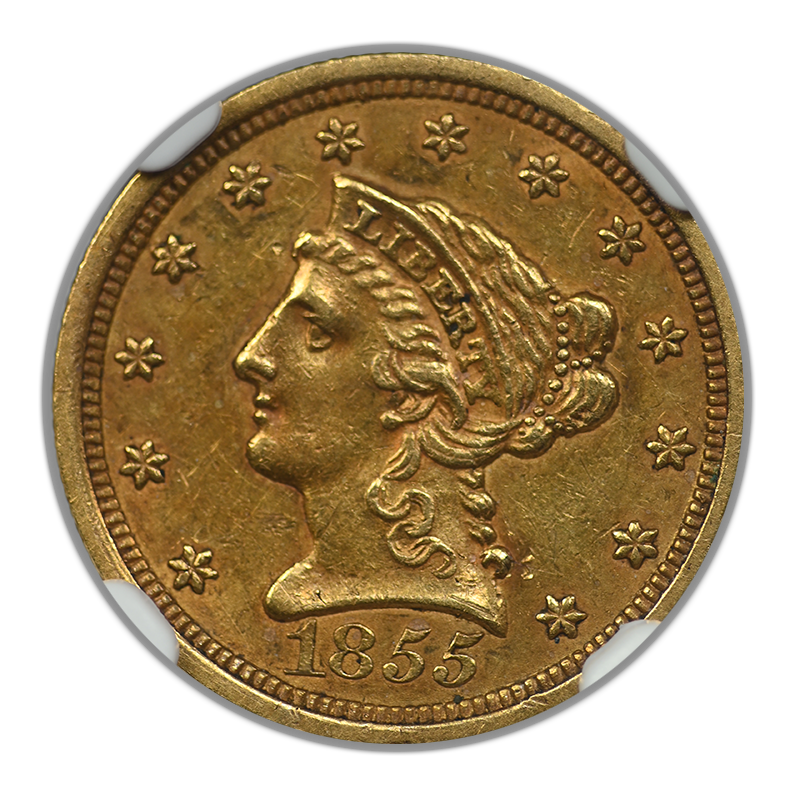 1855 Liberty Head Gold Quarter Eagle $2.50 NGC AU55