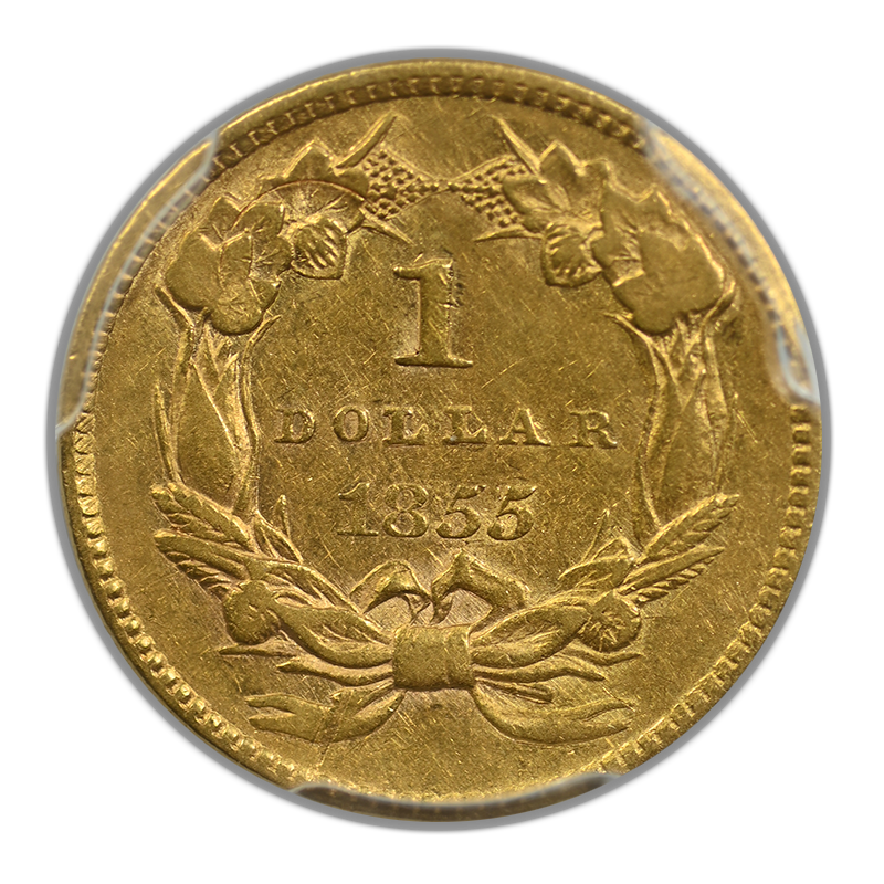 1855 Type 2 Indian Princess Head Gold Dollar G$1 PCGS AU53