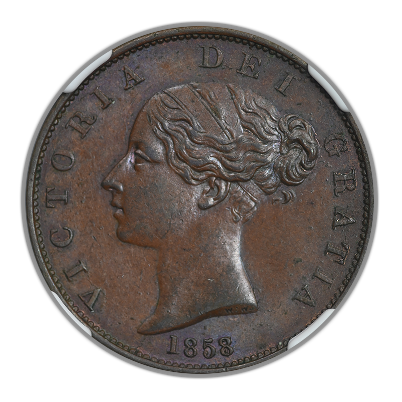 1858/7 Great Britain 1/2P Half Penny NGC MS63BN