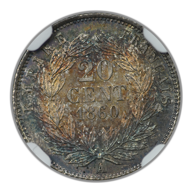 1860/50A France 20C Centimes NGC MS63 - TONED!