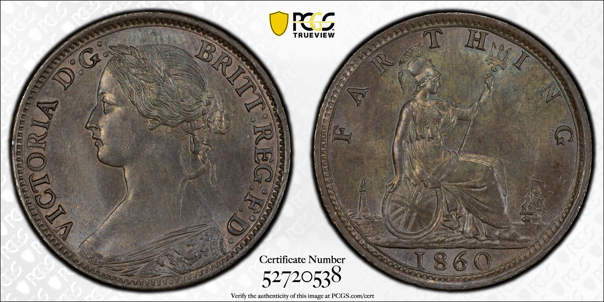 1860 Great Britain 1/4D Farthing PCGS MS64BN S-3958 Toothed Border