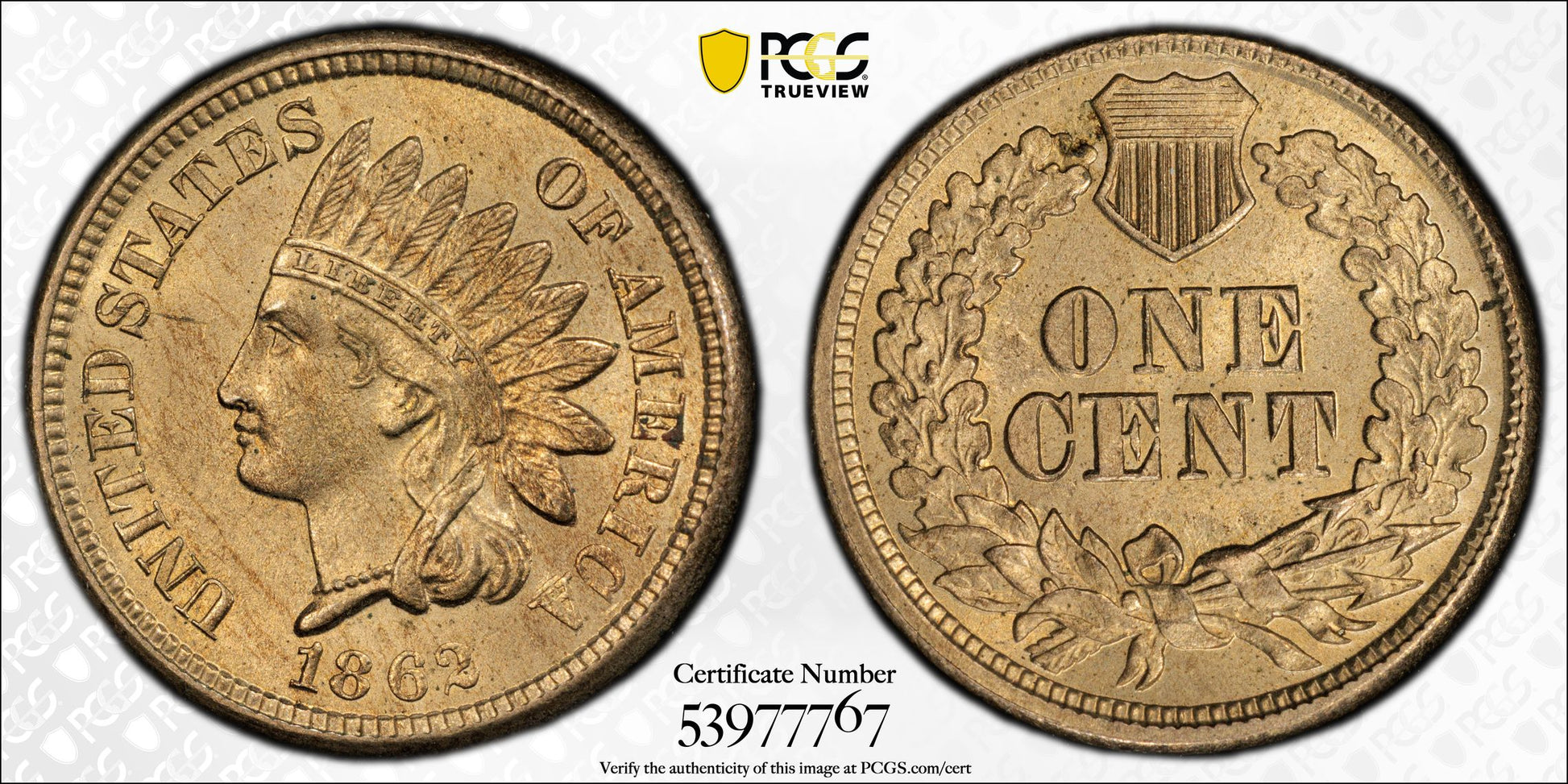 1862 Indian Head Cent 1C PCGS MS64 CAC