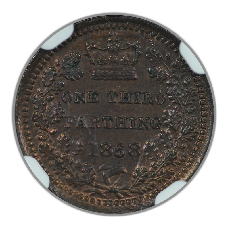 1868 Great Britain 1/3F Farthing NGC MS62BN