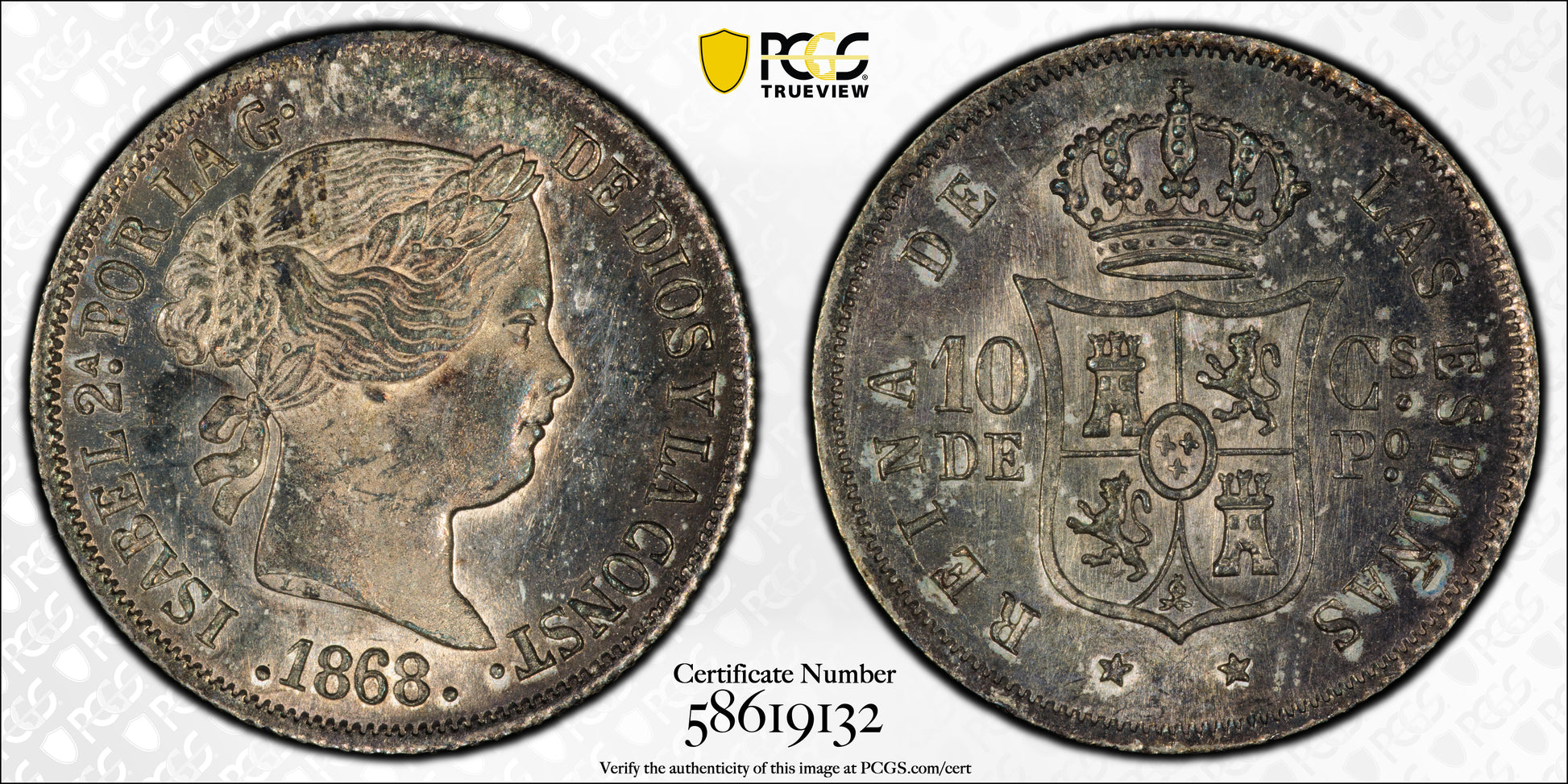 1868 Spanish Philippines 10C Centimos PCGS MS63