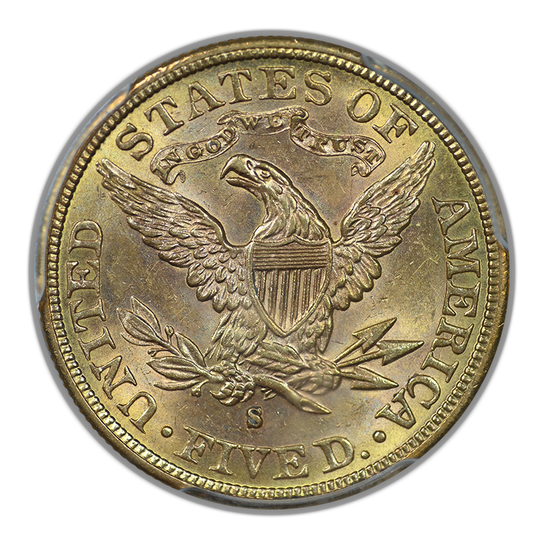 1882-S Liberty Head Gold Half Eagle $5 PCGS MS63+