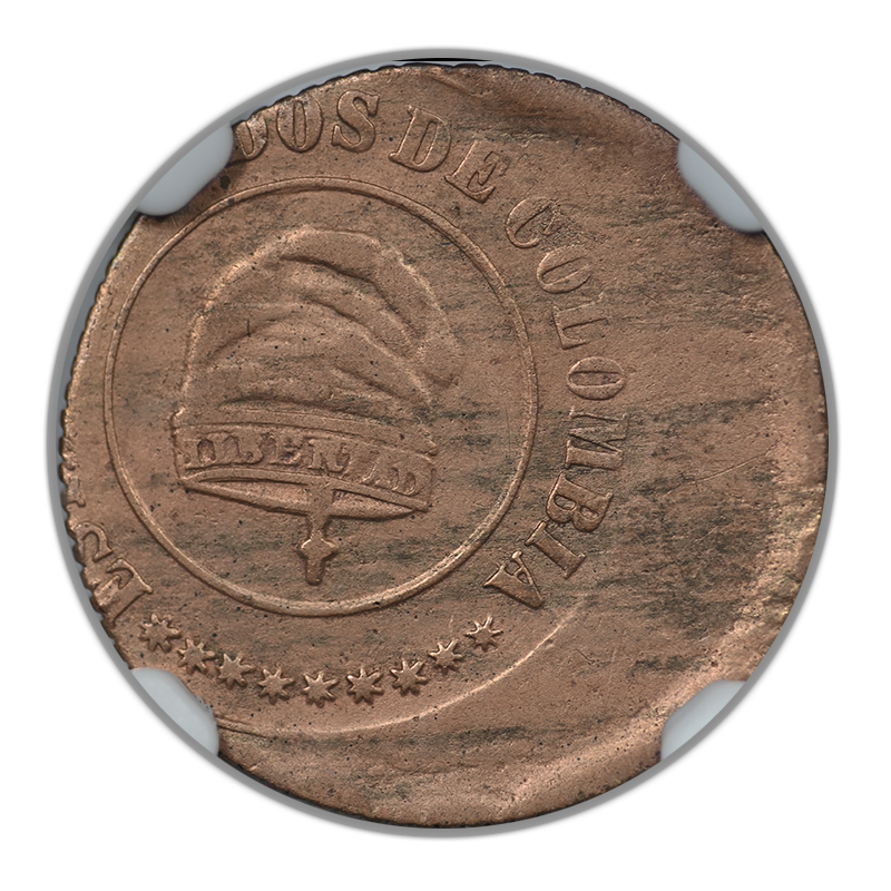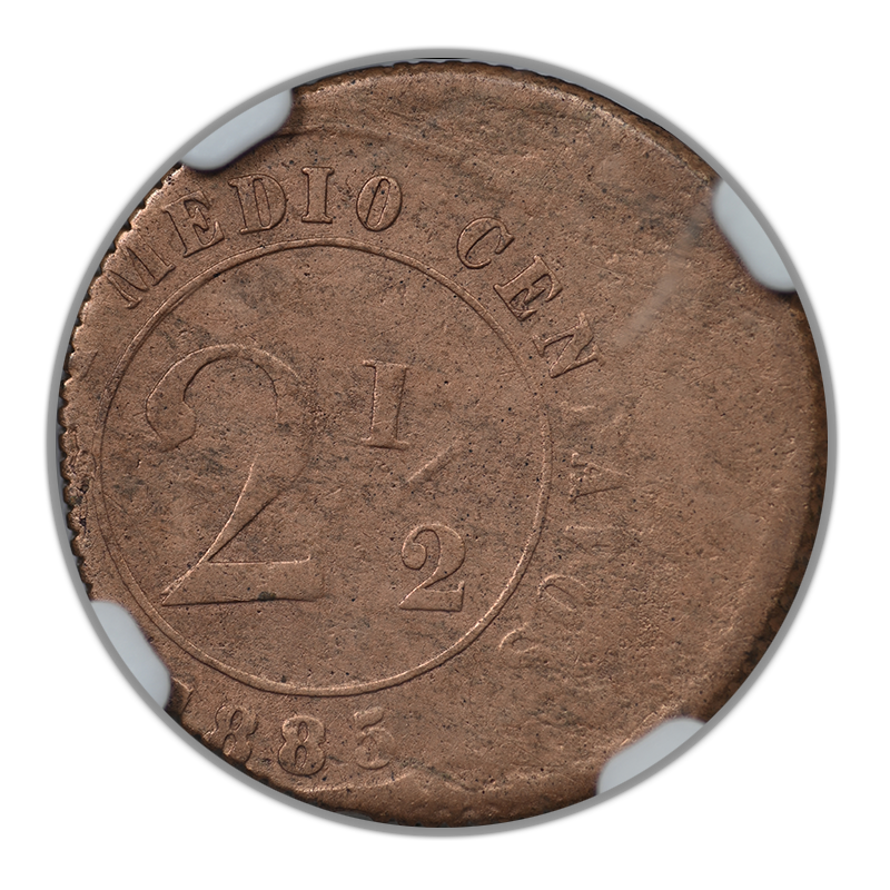 1885(B) Colombia 2.5C Centavos NGC Mint Error VF Details - 30% Off Center
