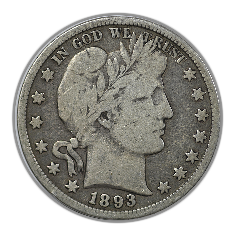 1893 Barber Half Dollar 50C Raw Original G+ Good