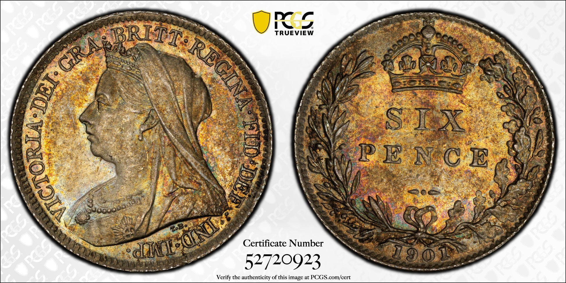 1901 Great Britain 6D Pence Sixpence PCGS MS64 S-3941 - TONED!