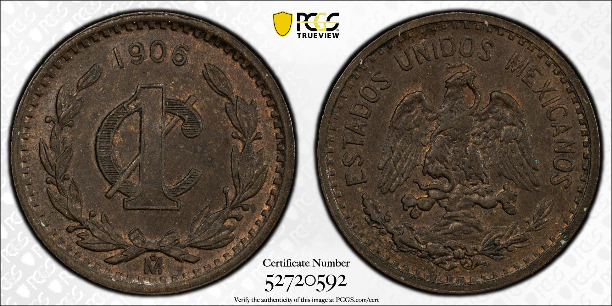 1906-Mo Mexico 1C Centavo PCGS MS62BN - Narrow Date
