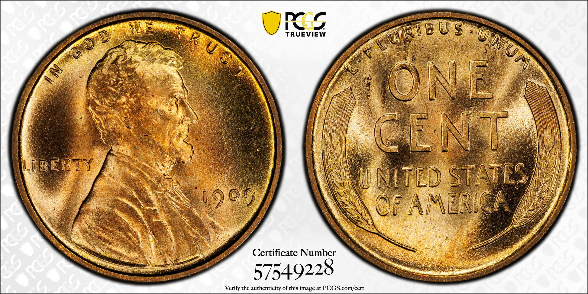 1909 VDB Lincoln Wheat Cent 1C PCGS MS67RD