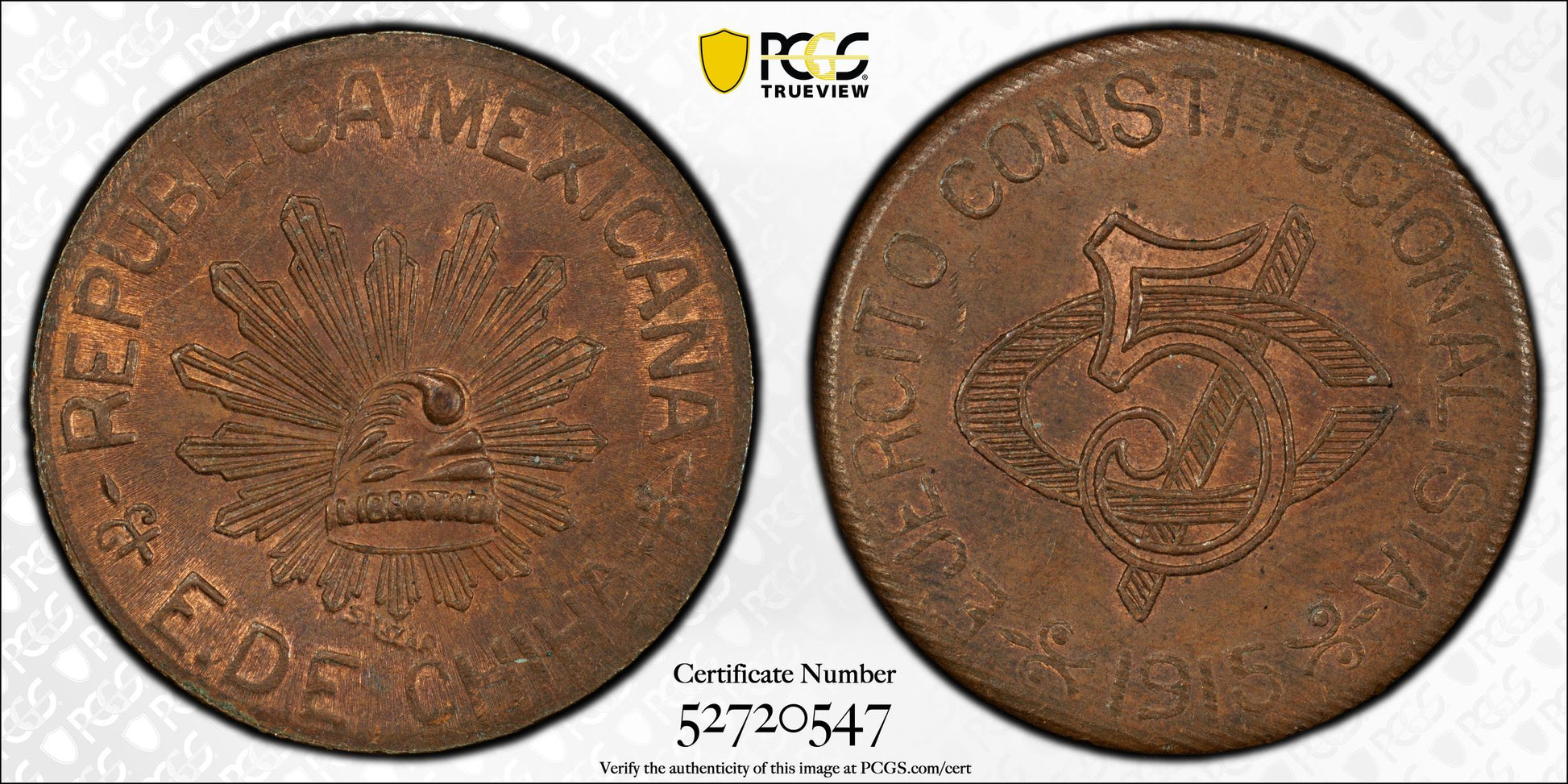 1915 Mexico Chihuahua 5C Centavos PCGS MS64BN KM-613