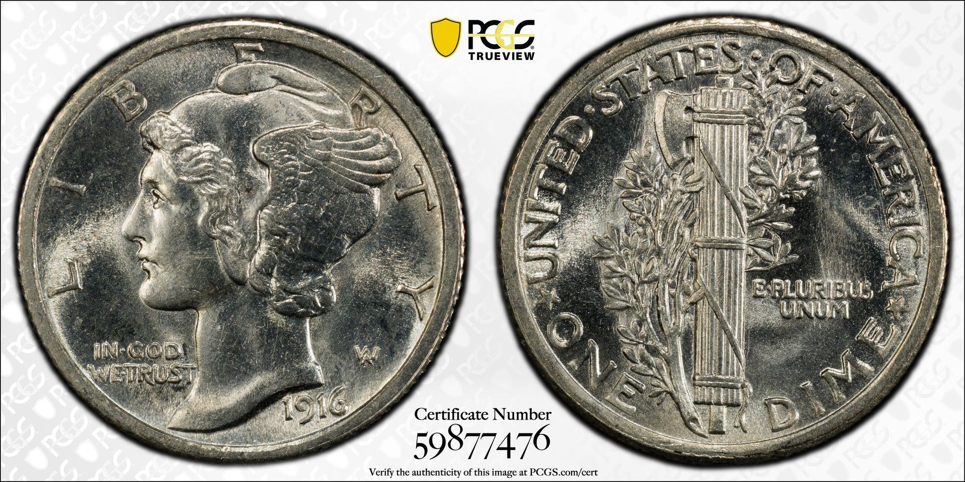 1916 Mercury Dime 10C PCGS MS62FB - Full Bands