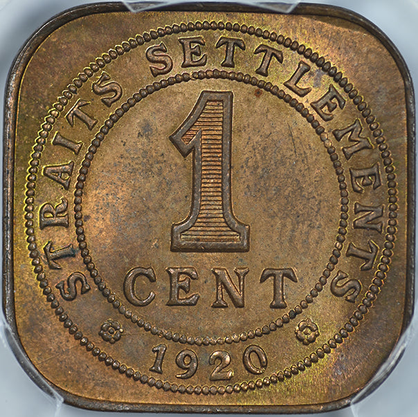1920 Straits Settlements 1C Cent PCGS MS63RB - TONED!