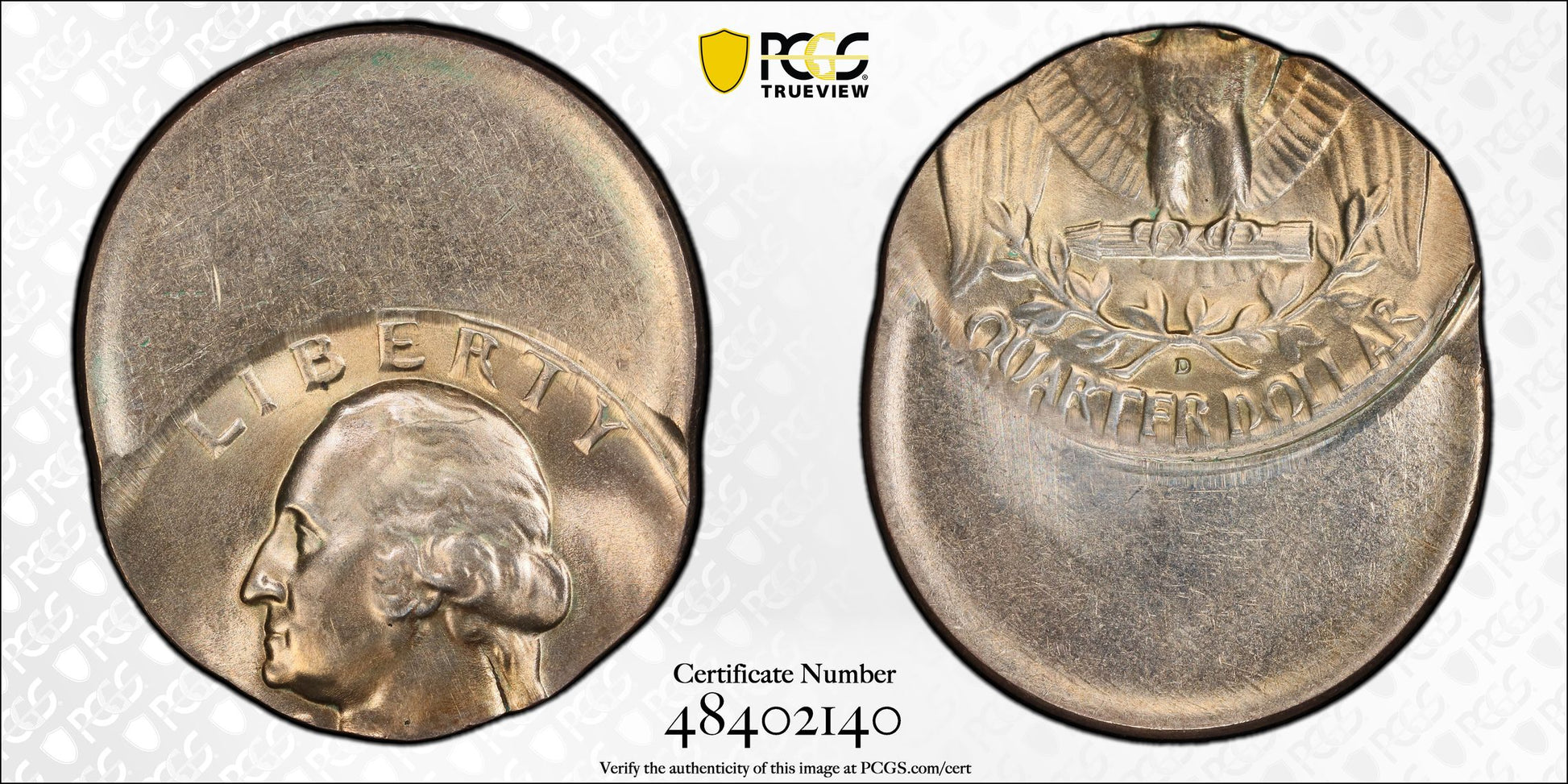 (1932-64-D) Washington Quarter 25C PCGS MS63 - Mint Error Struck 50% Off-Center