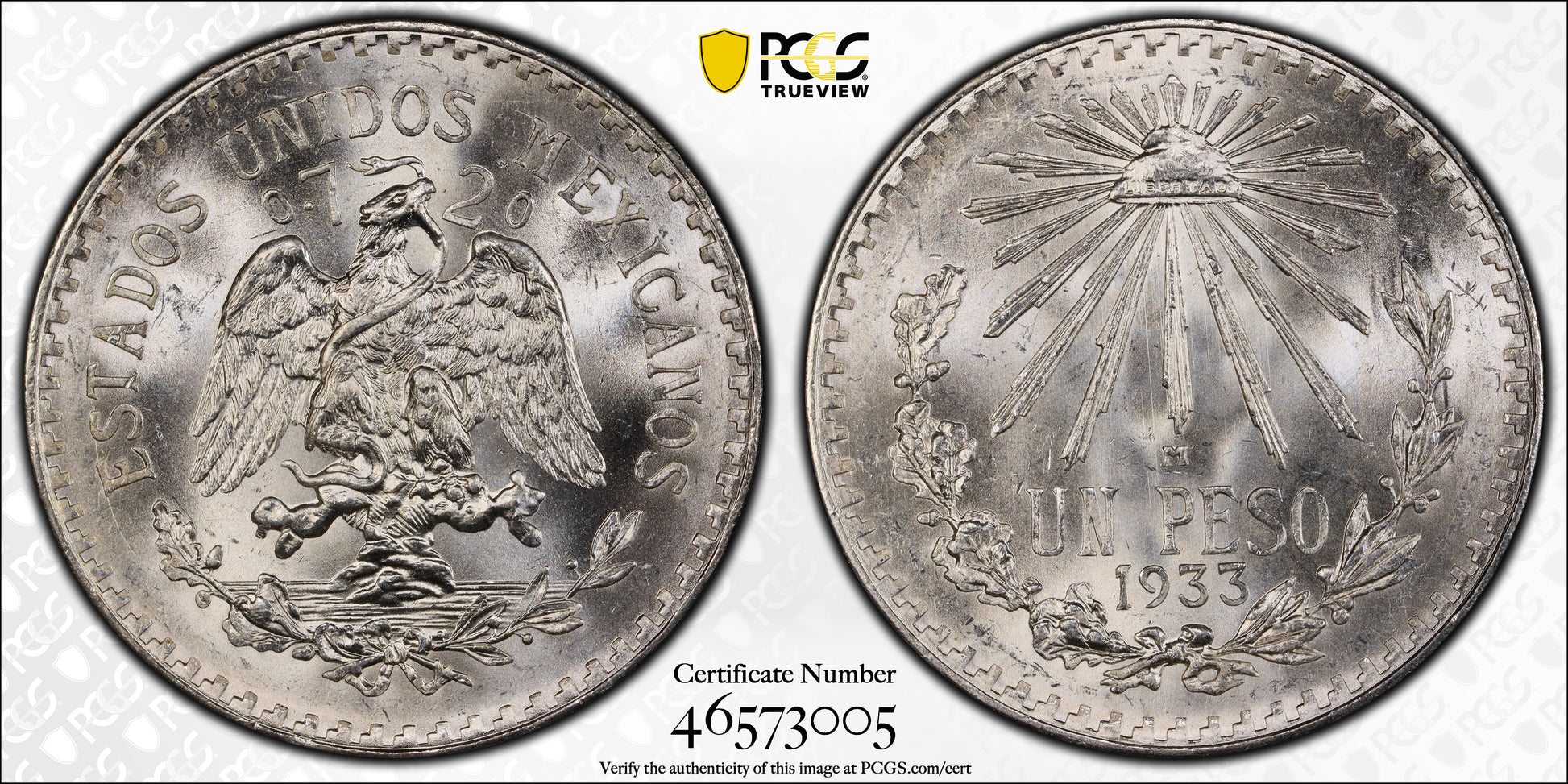1933-M Mexico Silver Peso PCGS MS65 KM-455