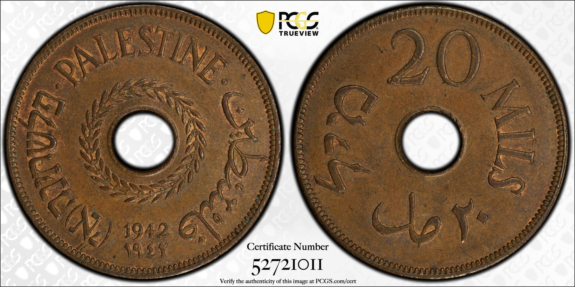 1942 Palestine 20M Mils PCGS MS62BN