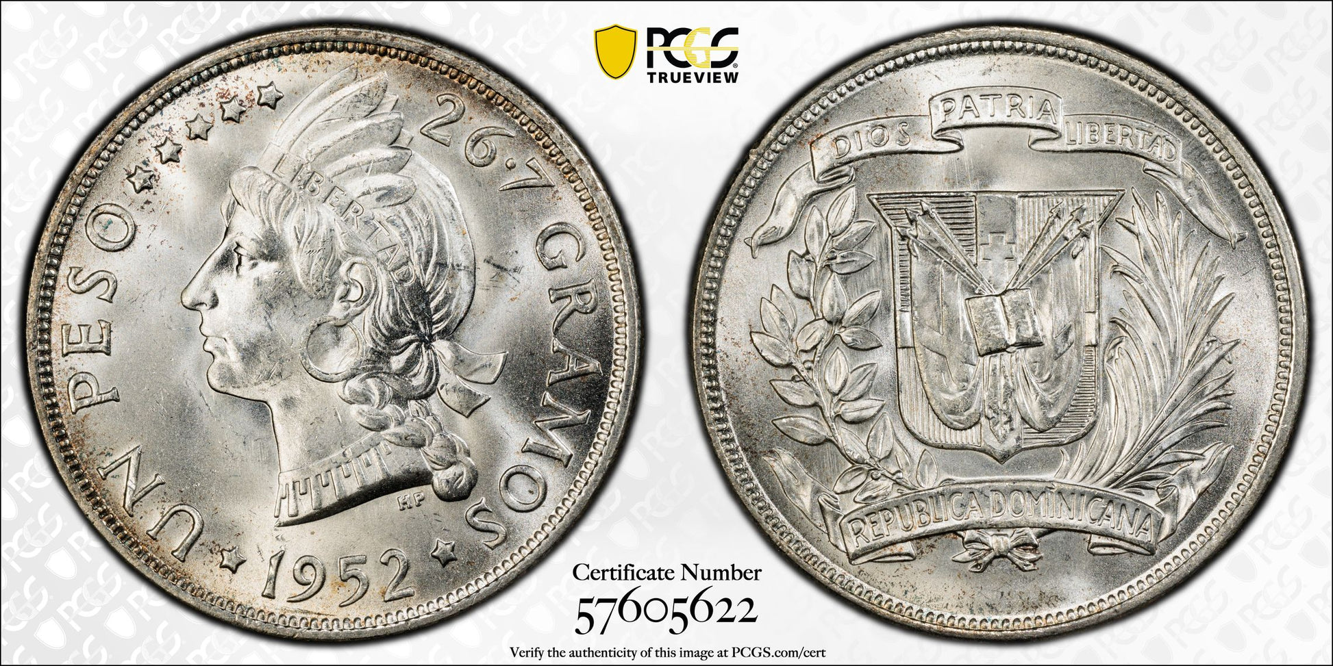 1952 Dominican Republic Peso PCGS MS64