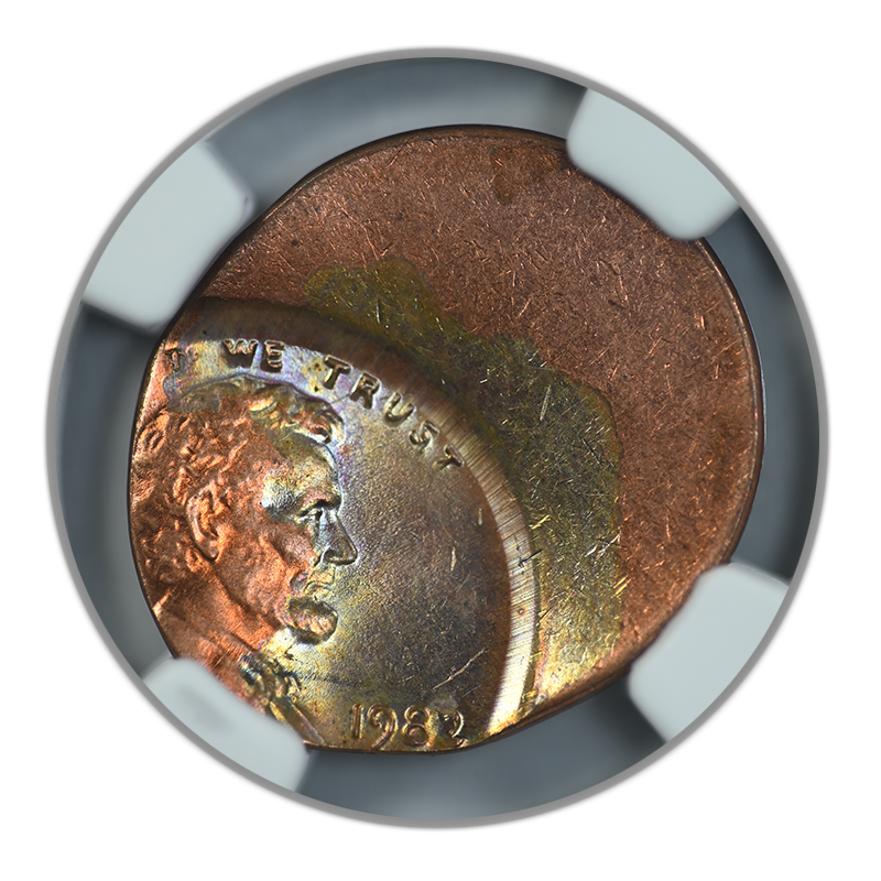 1982 Lincoln Memorial Cent 1C NGC Mint Error MS64RB - Struck 55% Off Center