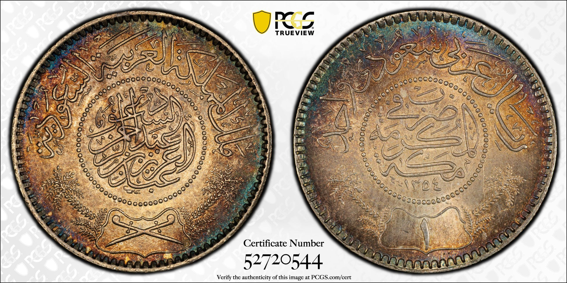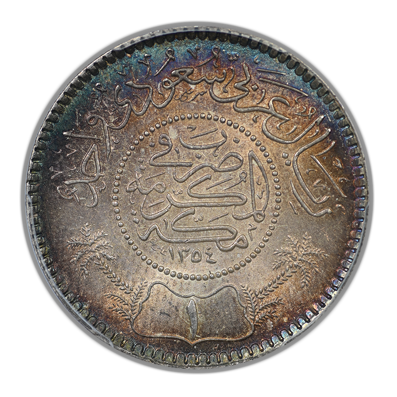 AH 1354 (1935) Saudi Arabia 1R Riyal PCGS MS64 - TONED!