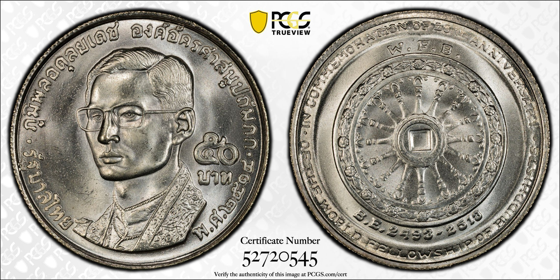 BE2514 (1971) Thailand 50 Baht Buddhist Fellowship PCGS MS67